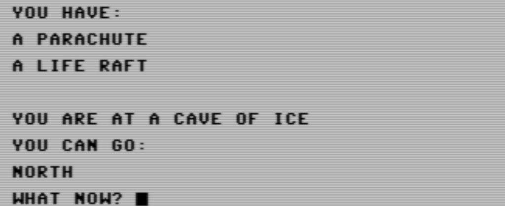 This is one of those adventures that has minimum location descriptions, but reveals a lot more when you type ‘look’, so the key here is to move, map and look around. It’s a small adventure, and limited in terms of vocabulary and has a weak parser. It also isn’t particularly logical and gets stuck in some place. Having said that I quite enjoyed it.